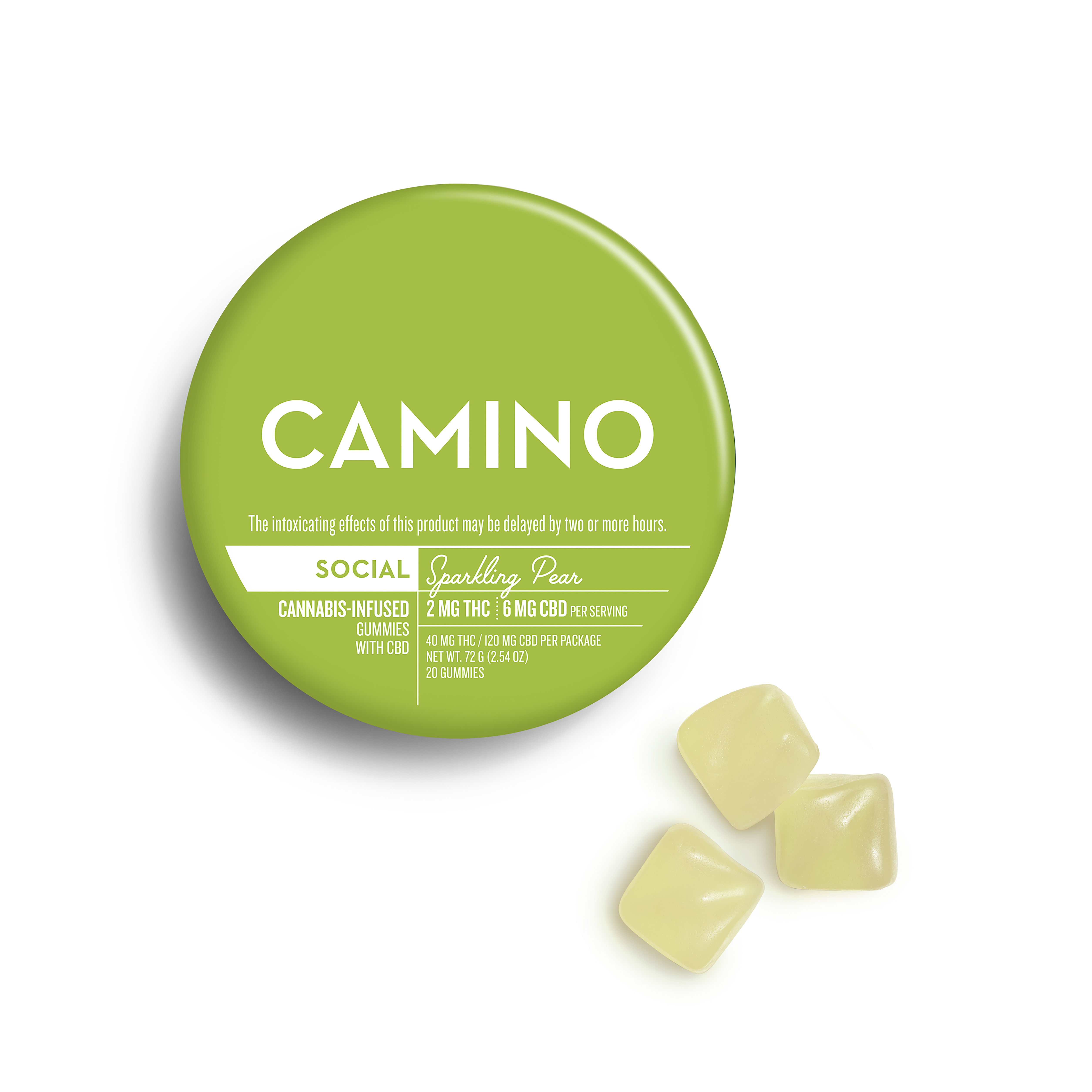 Camino Gummies (Social) - Sparkling Pear - 40mg THC / 120mg CBD 20pk