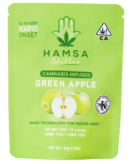 Hamsa Fast Acting Green Apple Hybrid Edibles 10pk 100mg