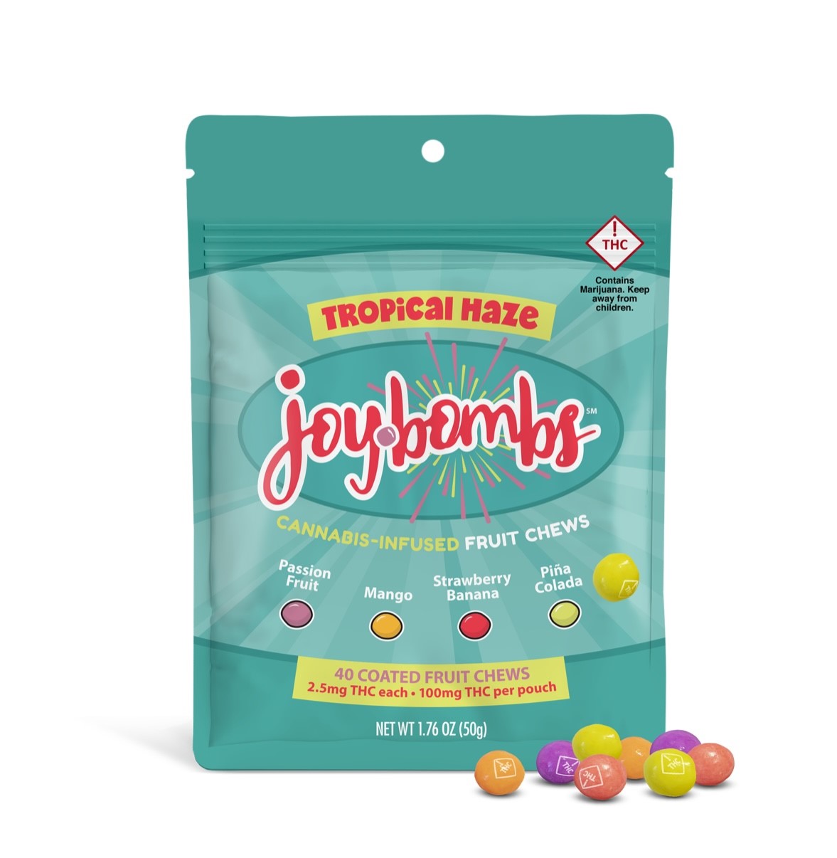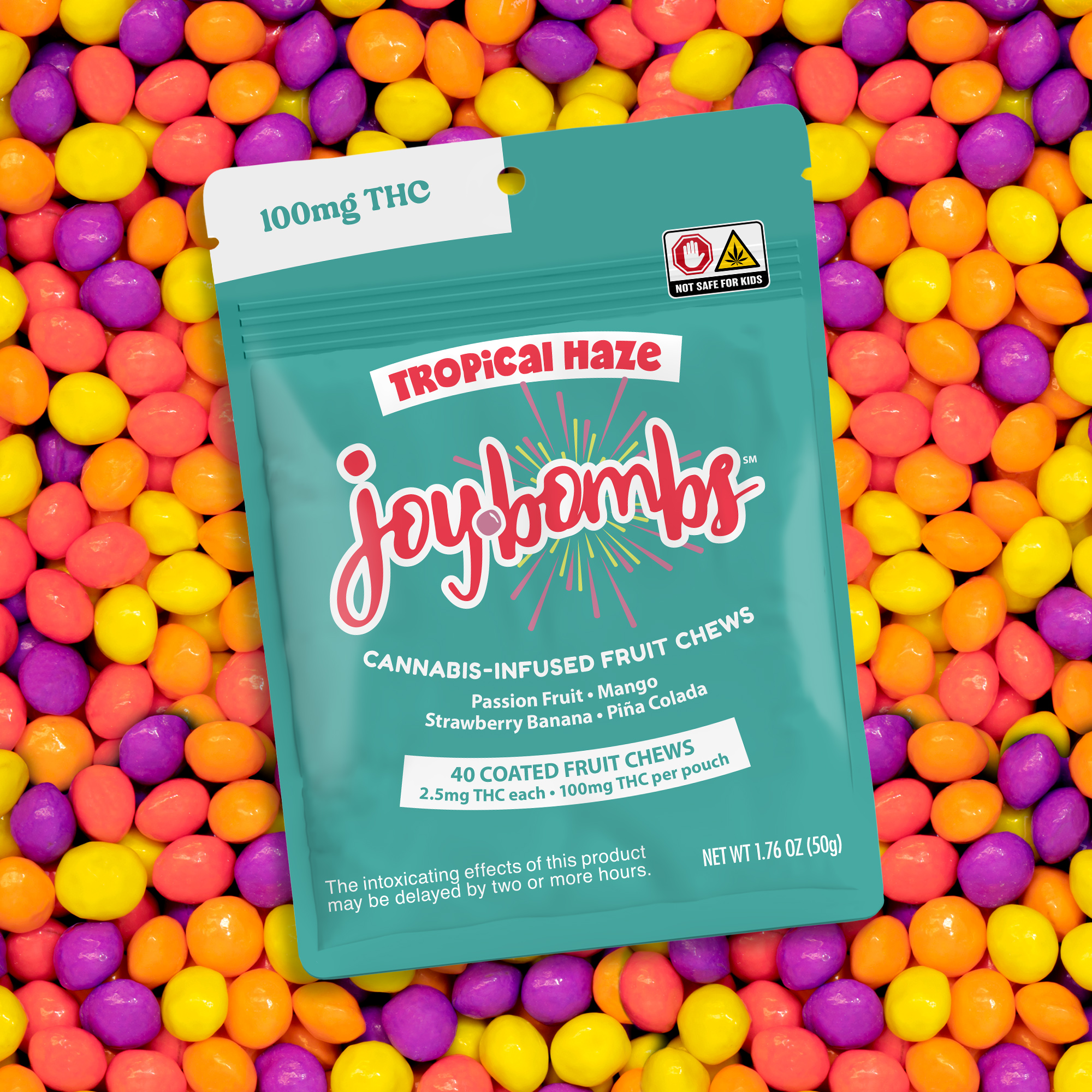Joybombs | Tropical Haze (H) Candy-Coated Fruit Chews | 40 Pack (100mg)