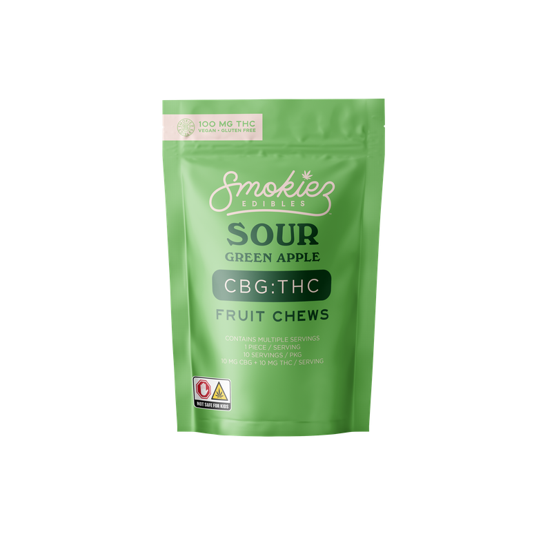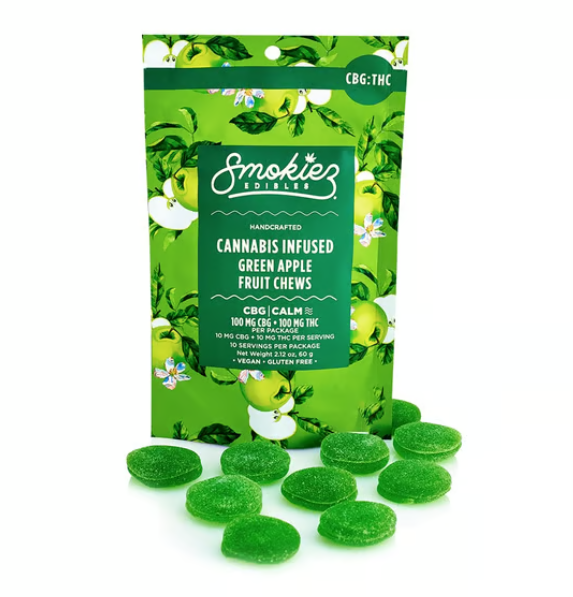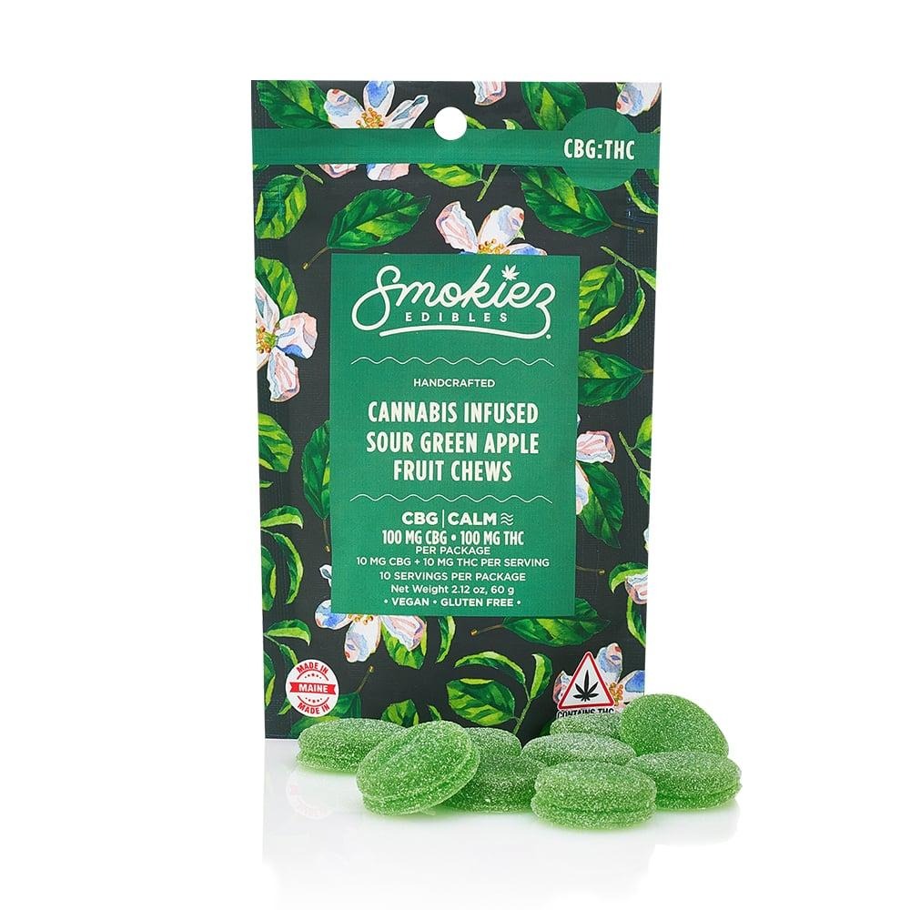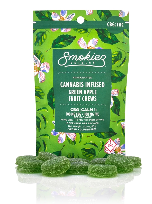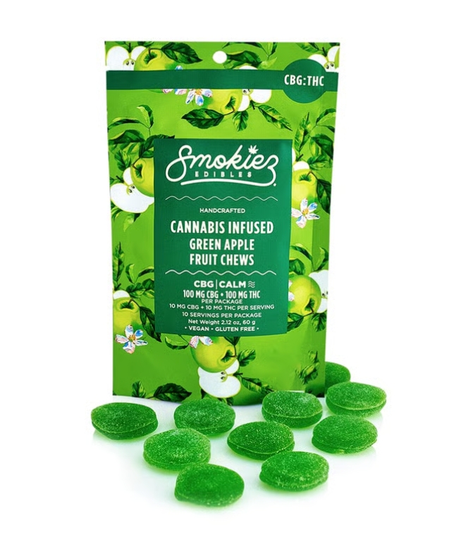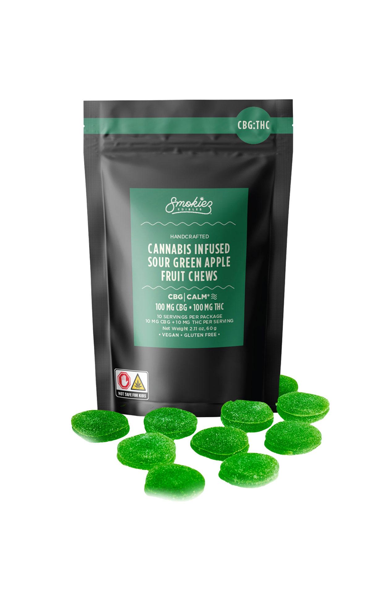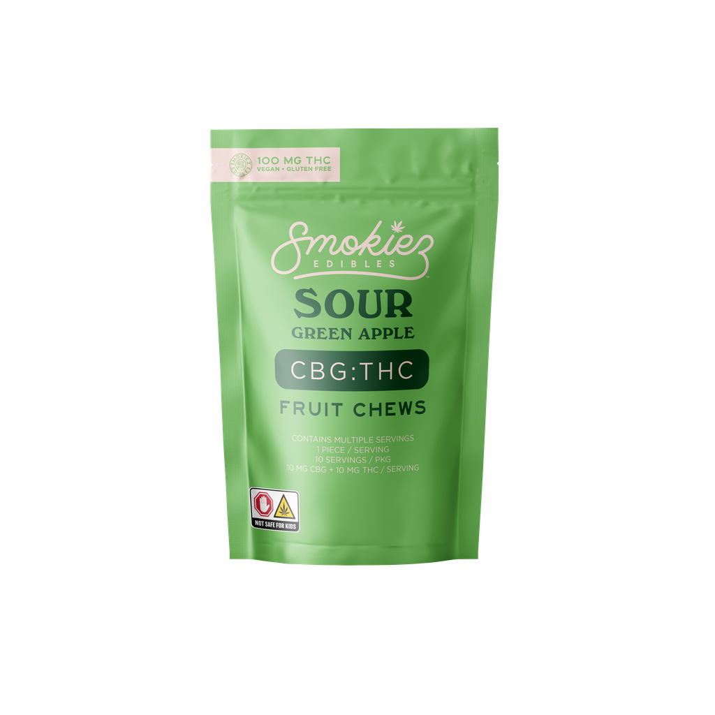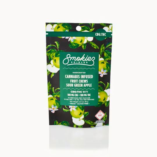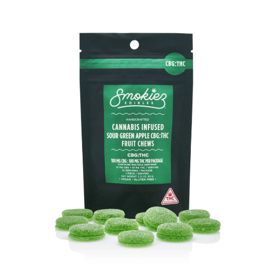 SMOKIEZ | Sour Green Apple Fruit Chews | 1:1 CBG:THC | 10pk | 100mg