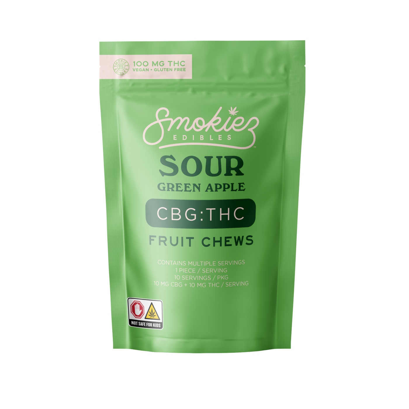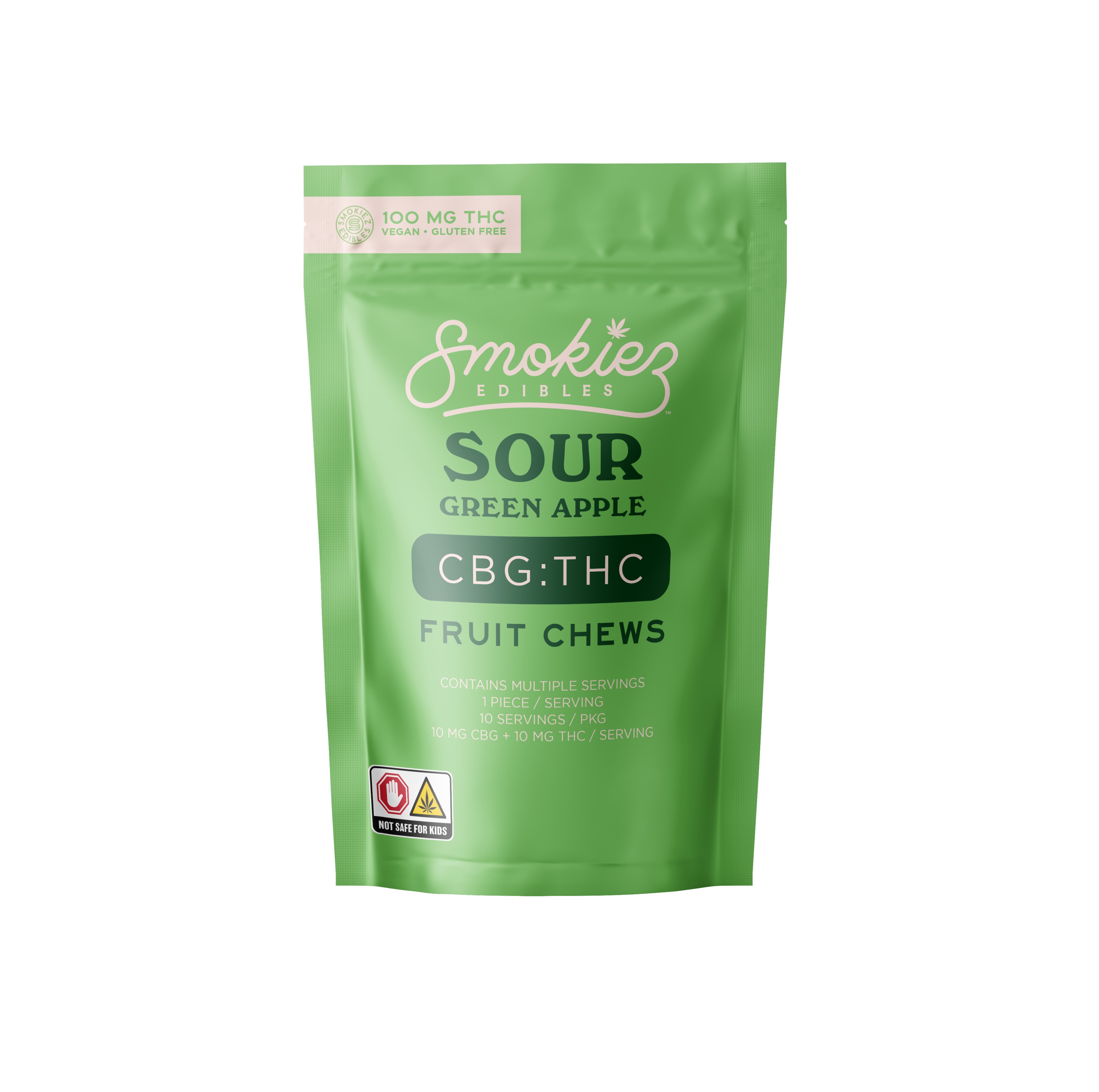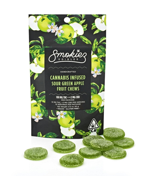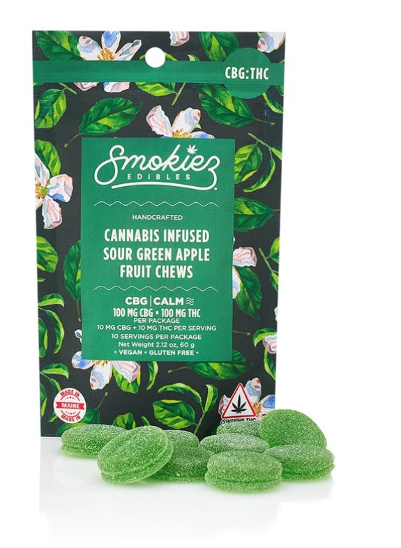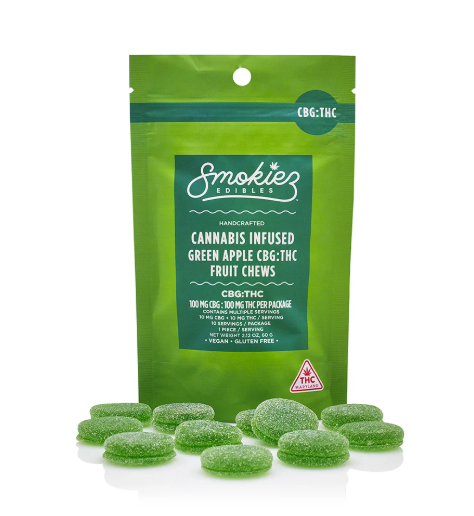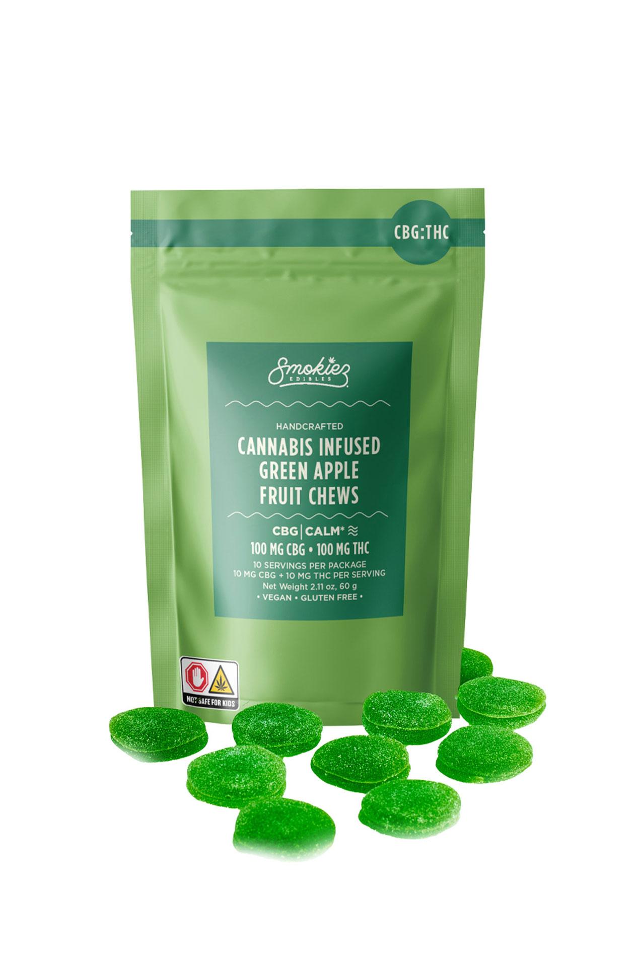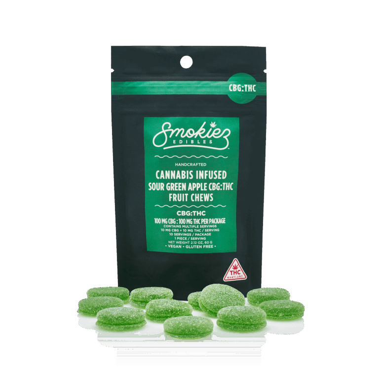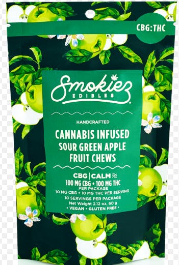 SMOKIEZ | Sour Green Apple Fruit Chews | 1:1 CBG:THC | 10pk | 100mg