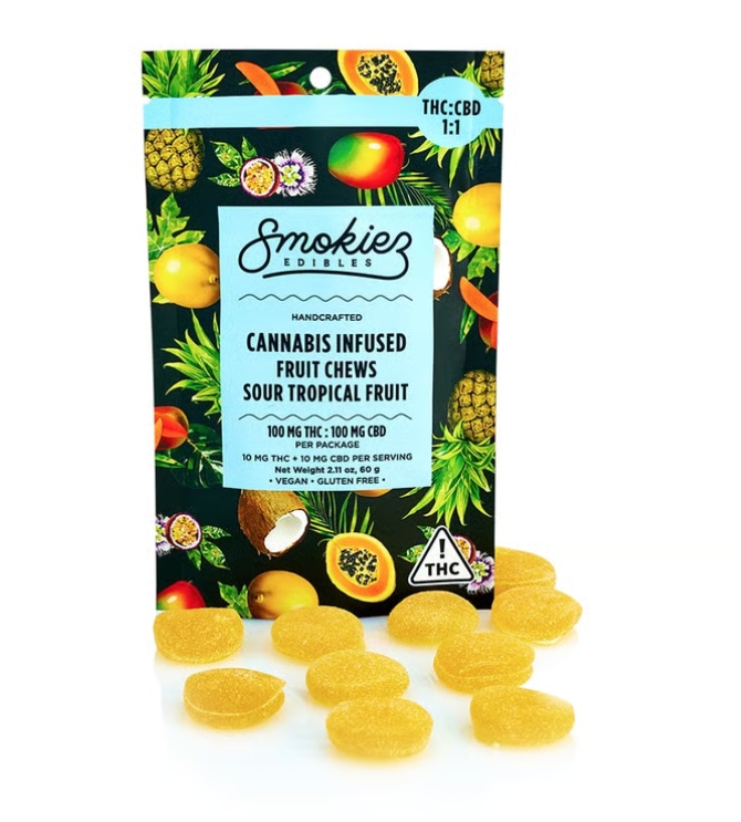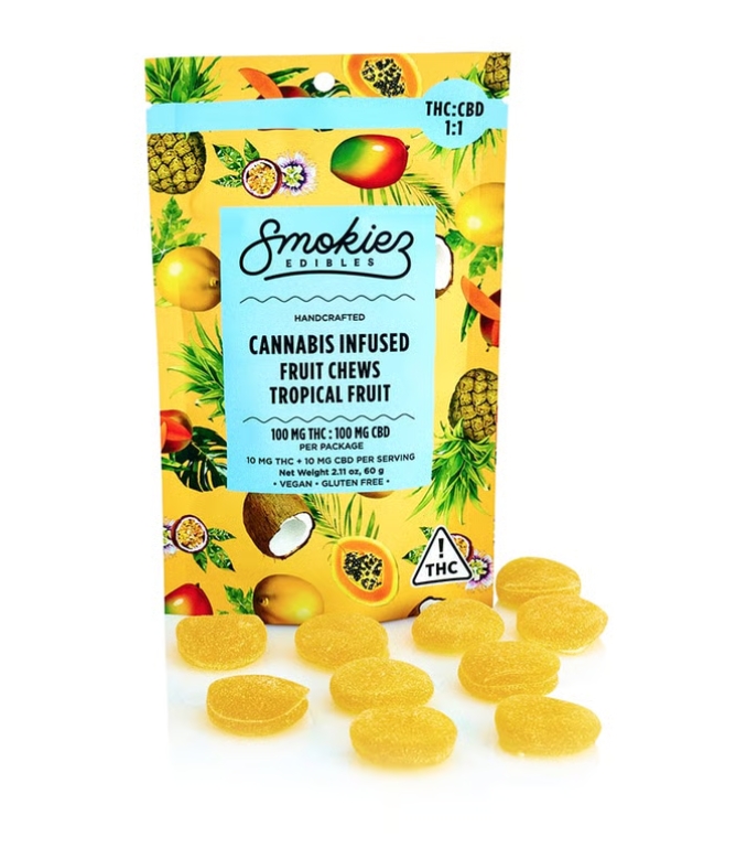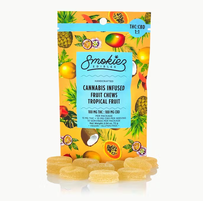 SMOKIEZ | Sweet Tropical Fruit Chews | 1:1 THC:CBD | 10pk | 100mg