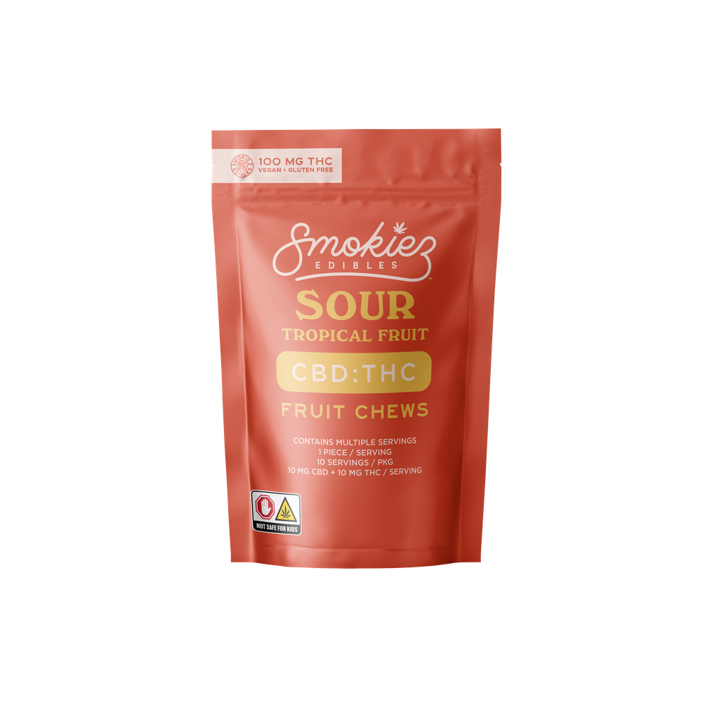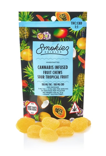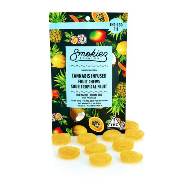 Smokiez | Sour Tropical Fruit Chews | 10pk/100mg 1:1 CBD:THC