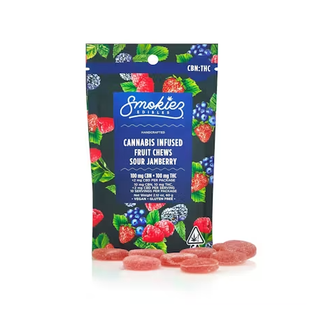 Smokiez - Sour Jamberry CBN:THC Fruit Chews - 100mg (10pcs)