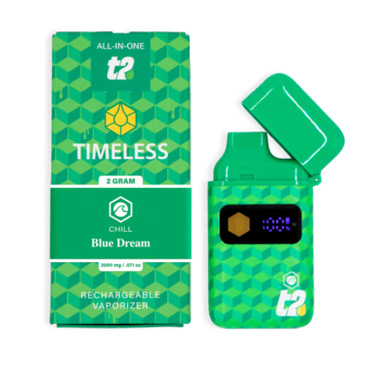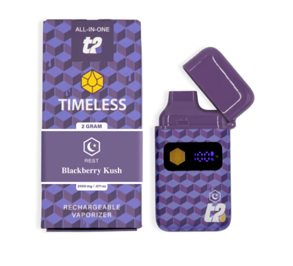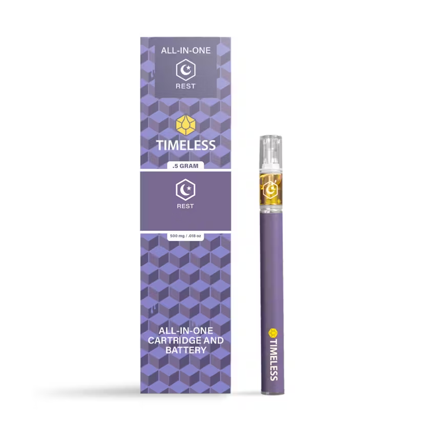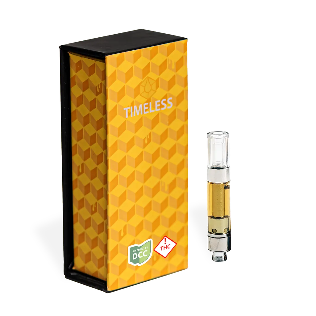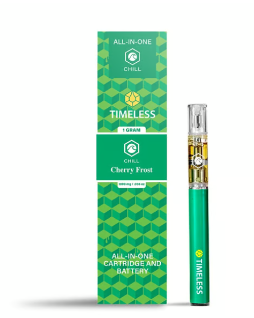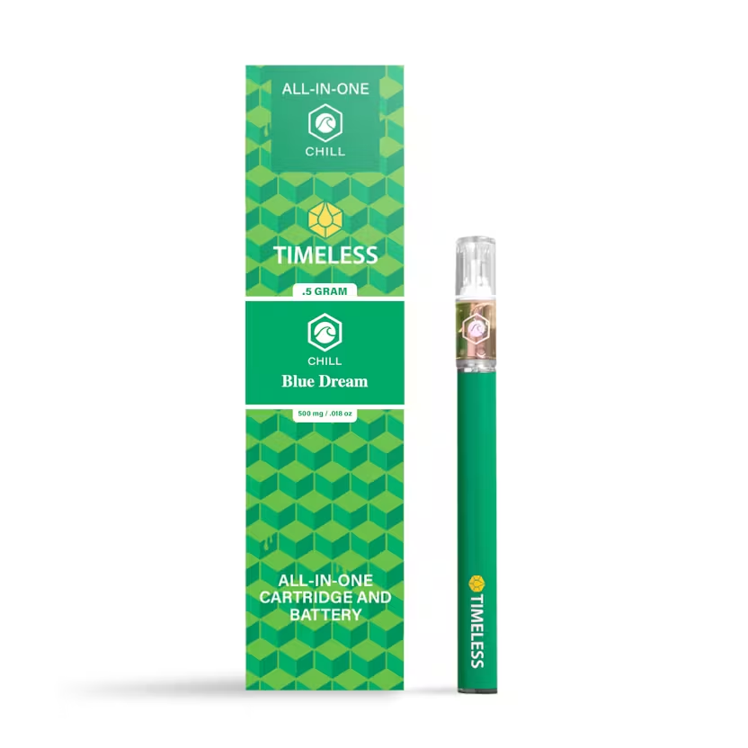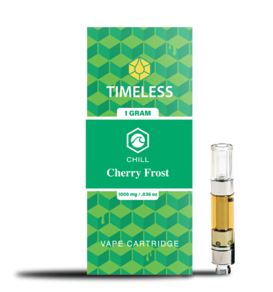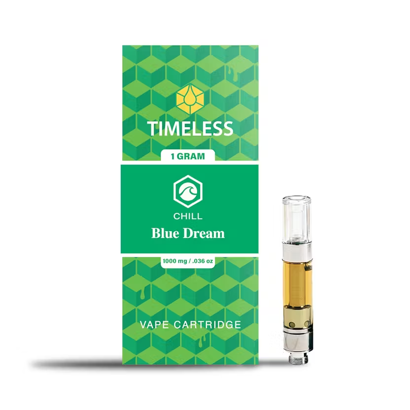 A few products consistently show up across the most locations. Timeless: Vape | Blackberry Kush | All-In-One | 0.5g (14 stores), Timeless: Vape | Cherry Icy | Cartridge | 1g (13 stores), and Timeless: Vape | Blue Dream | Cartridge | 1g (13 stores).